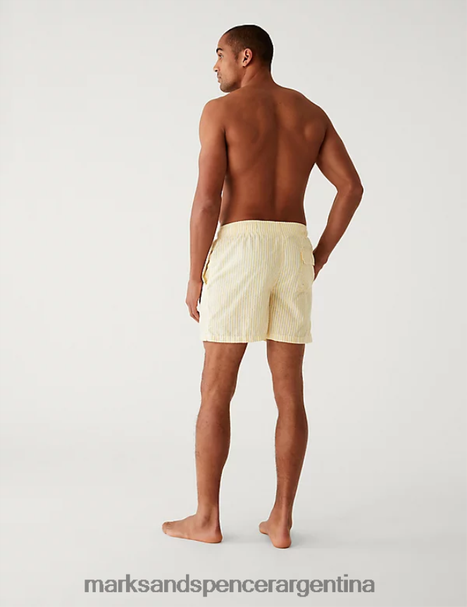 Marks & Spencer hombres shorts de baño de sirsaca a rayas de secado rápido ropa luz solar 46VL5086